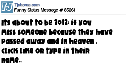 X is its about to be 2012: if you miss someone because they have passed away and in heaven , click like or type in their name..