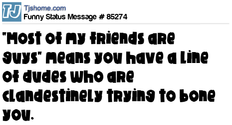 - # 70898 Women need to learn that, "most of my friends are guys" just means you have a list of dudes who harbour secret ambitions of banging you someday.