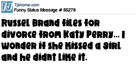 X Russel Brand files for divorce from Katy Perry... I wonder if she kissed a girl and he didnt like it.