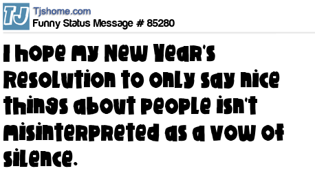 X I hope my New Year's Resolution to only say nice things about people isn't misinterpreted as a vow of silence.