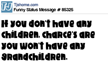 X If you don't have any children, charce's are you won't have any grandchildren.