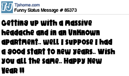 X Getting up with a massive headache and in an Unknown apartment.. well I suppose I had a good start to new years.. Wish you all the same.. Happy New Year !!
