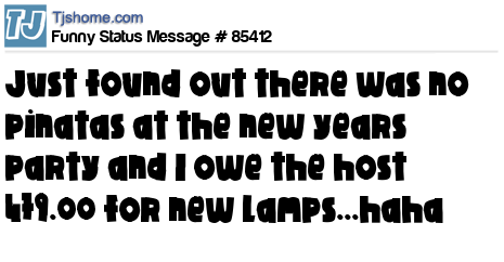 X is just found out there was no pinatas at the new years party and I owe the host 479.00 for new lamps...haha