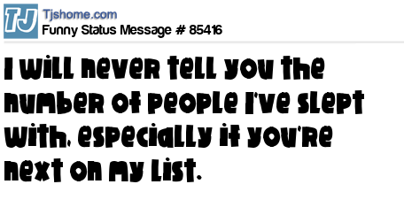X says I will never tell you the number of people I've slept with, especially if you're next on my list.