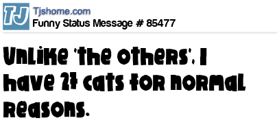 X says Unlike 'the others', I have 27 cats for normal reasons.