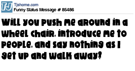 X Will you push me around in a wheel chair, introduce me to people, and say nothing as I get up and walk away?