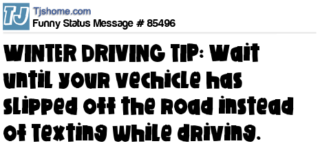 X says WINTER DRIVING TIP: Wait until your vechicle has slipped off the road instead of Texting while driving.