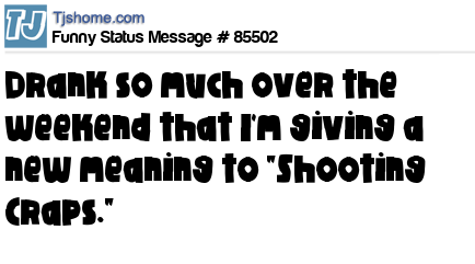 X Drank so much over the weekend that I'm giving a new meaning to "Shooting Craps."