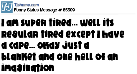 X is I am super tired... well its regular tired except I have a cape... okay just a blanket and one hell of an imagination
