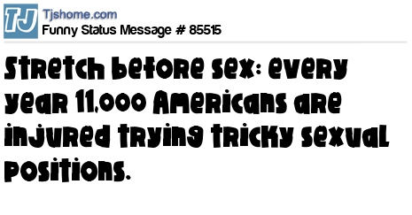 X says Stretch before sex: every year 11,000 Americans are injured trying tricky sexual positions.