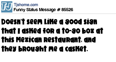 X Doesn't seem like a good sign that I asked for a to-go box at this Mexican restaurant, and they brought me a casket.