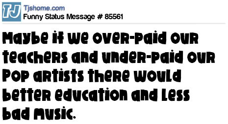 - # 209183 Maybe if we over-paid our teachers and under-paid our Pop artists their would be better education and less bad music.