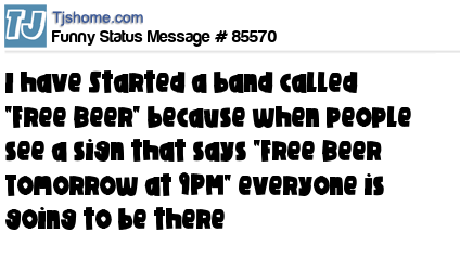 - # 183339 I’m going to start a band called “Free Beer” because when people see a sign that says, “Free Beer Tomorrow at 9PM” everyone is going to be there.