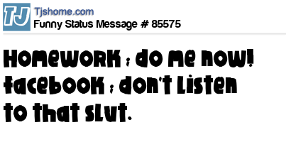 X is homework ; do me now! facebook ; don't listen to that slut.