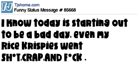 X I know today is starting out to be a bad day, even my Rice Krispies went SH*T,CRAP,AND F*CK .
