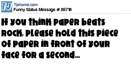 - # 58363 If you think paper beats rock...Hold a piece of paper up in front of your face and I'll throw a rock at it.