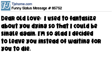 X says Dear old love: I used to fantasize about you dying so that I could be single again. I'm so glad I decided to leave you instead of waiting for you to die.