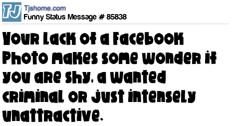 X says Your lack of a Facebook Photo makes some wonder if you are shy, a wanted criminal or just intensely unattractive.