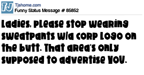 X Ladies, please stop wearing sweatpants w/a corp logo on the butt. That area's only supposed to advertise YOU.