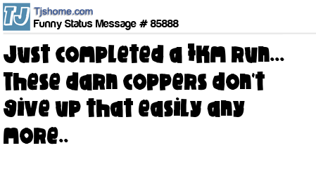 X  Just completed a 7km run... These darn coppers don't give up that easily any more..