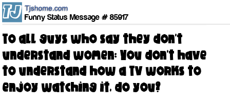 X says To all guys who say they don't understand women: You don't have to understand how a TV works to enjoy watching it, do you?