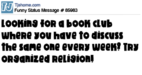 X Looking for a book club where you have to discuss the same one every week? Try organized religion!