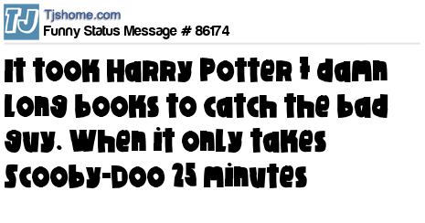 X is It took Harry Potter 7 damn long books to catch the bad guy. When it only takes Scooby-Doo 25 minutes