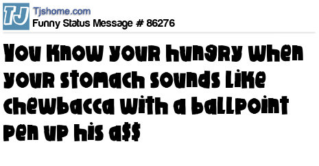 X  you know your hungry when your stomach sounds like chewbacca with a ballpoint pen up his a$$