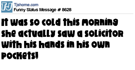 X says It was so cold this morning she actually saw a solicitor with his hands in his own pockets!