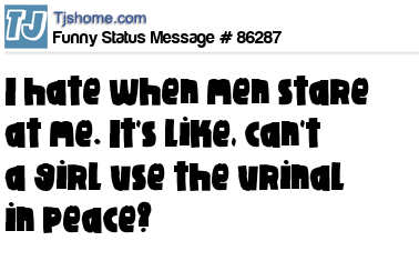 X says I hate when men stare at me. It's like, can't a girl use the urinal in peace?