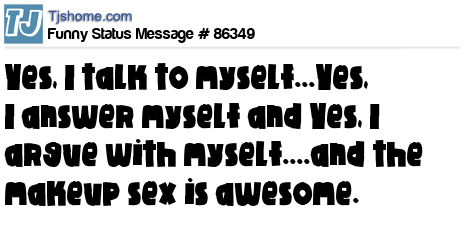 - # 61455 Yes,I talk to myself..Yes, I answer myself and Yes, I argue with myself..and the makeup sex is awesome.
