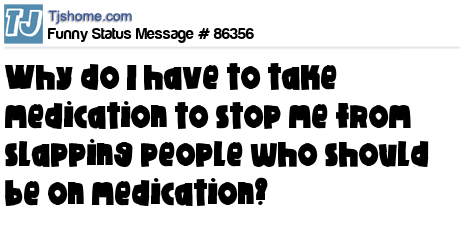 - # 100213 SO! My Dr tells me I have to take medication. Why? To stop you from slapping people who should be on medication. Hmmmm!