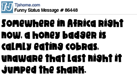 X Somewhere in Africa right now, a honey badger is calmly eating cobras, unaware that last night it jumped the shark.