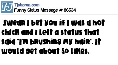 - # 67954 I bet if I was a hot chick and I left a status that said "I'm brushing my hair". It would get about 50 likes.