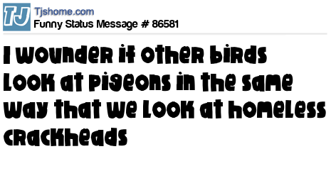 X I wounder if other birds look at pigeons in the same way that we look at homeless crackheads