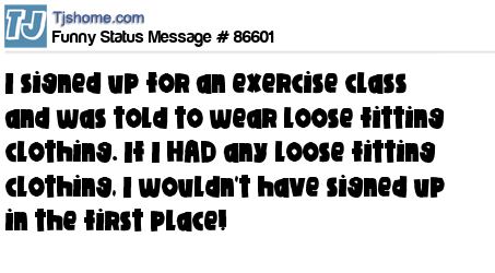 - # 49140 I signed up for an exercise class and was told to wear loose fitting clothes. If I had any I wouldn't have signed up in the first place!