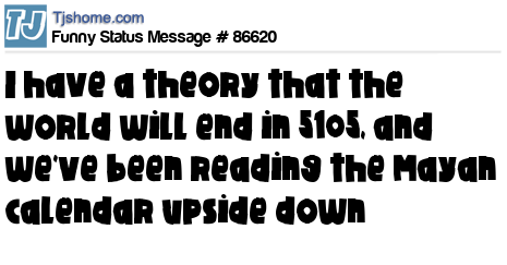- # 48293 I heard that the world is going to end in 2012, because that's only as far as the Mayan calendar goes. But the news gets even worse: I checked MY calendar, and it only goes to the end of this year!"