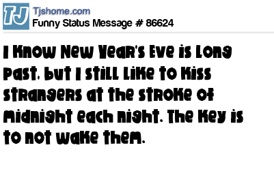 X is I know New Year's Eve is long past, but I still like to kiss strangers at the stroke of midnight each night. The key is to not wake them.