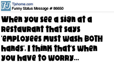 X is when you see a sign at a restaurant that says 'employees must wash BOTH hands', I think that's when you have to worry...