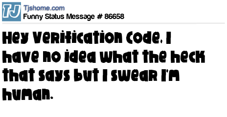 X says Hey Verification Code, I have no idea what the heck that says but I swear I'm human.