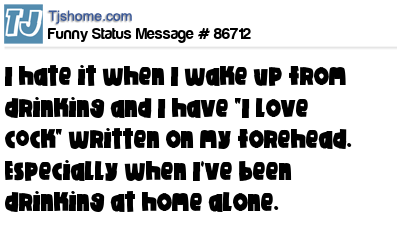 X says I hate it when I wake up from drinking and I have "I love c0ck" written on my forehead. Especially when I've been drinking at home alone.