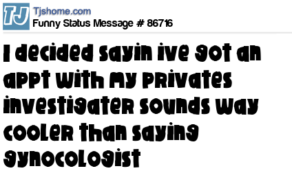 X says i decided sayin ive got an appt with my privates investigater sounds way cooler than saying gynocologist