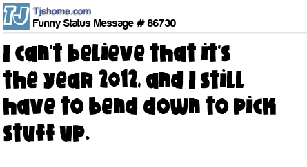X is I can't believe that it's the year 2012, and I still have to bend down to pick stuff up.