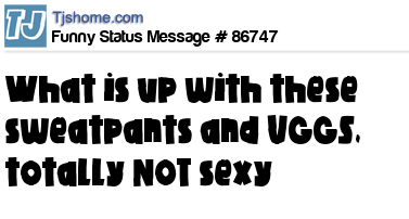 X is what is up with these sweatpants and UGGS, totally NOT sexy