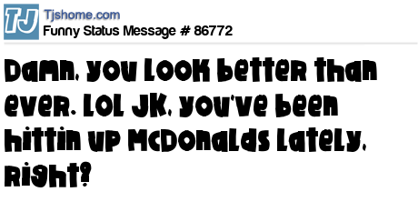 - # 86259 Dang, you look better than ever. LOL JK, you've been hittin up McDonalds lately, right?