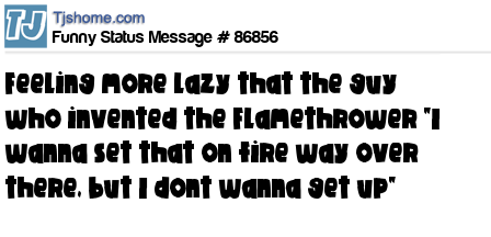 X is feeling more lazy that the guy who invented the Flamethrower "I wanna set that on fire way over there, but I dont wanna get up"
