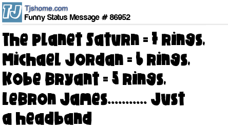 - # 90353 Planet Saturn = 7 rings Michael Jordan = 6 rings Kobe Bryant = 5 rings LeBron James = 1 really nice headband