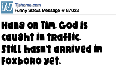 X  Hang on Tim, God is caught in traffic. Still hasn't arrived in Foxboro yet.