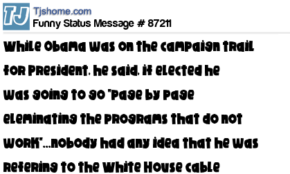 X While Obama was on the campaign trail for President, he said, if elected he was going to go "page by page eleminating the programs that do not work"...nobody had any idea that he was refering to the White House cable guide...