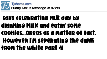 X says says celebrating MLK day by drinking MILK and eatin' some cookies...Oreos as a matter of fact. However I'm seperating the dark from the white part :Y